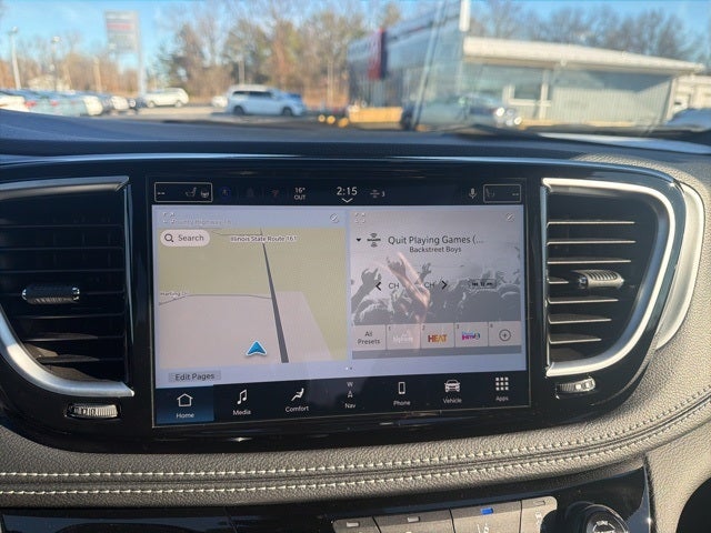 115V Auxiliary Power Outlet, 13 Speakers, 18 x 7.5 Painted Aluminum Wheels, 18x7.0 Polished/Painted Alloy wheels, 19 Harman/Kardon Speakers with Subwoofer, 2nd and 3rd Row Window Shades, 3-Channel Video Remote Control, 3.73 Axle Ratio, 360 Surround View Camera System, 3rd row seats: split-bench, 4-Wheel Disc Brakes, 760 Watt Amplifier, ABS brakes, Air Conditioning, All Weather Cargo Floor Mats, All Weather Floor Mats - Stow 'N Go, AM/FM radio: SiriusXM 360L, Amazon Fire TV Built-in, Apple CarPlay/Android Auto, Audio memory, Auto-dimming Rear-View mirror, Automatic temperature control, AWD Suspension, Black Seats, Blu-Ray/DVD Player/USB Port, Brake assist, Bright Door Sills, Bumpers: body-color, Cargo Area Liner, Compass, Delay-off headlights, Driver door bin, Driver vanity mirror, Driver's Seat Mounted Armrest, Dual front impact airbags, Dual front side impact airbags, Electronic Stability Control, Emergency communication system: Chrysler Connect, FamCAM Interior Camera, Four wheel independent suspension, Front anti-roll bar, Front Bucket Seats, Front dual zone A/C, Front fog lights, Front reading lights, Fully automatic headlights, Garage door transmitter, Gloss Black Exterior Mirrors, Hands Free Sliding Doors, Heated door mirrors, Heated front seats, Heated rear seats, Heated steering wheel, High Definition Multimedia Interface, Illuminated entry, Integrated Active Noise Cancellation, Knee airbag, Low tire pressure warning, Memory seat, MOPAR Interior Protection Package C, MyFlexCare Service Plan, Nappa Leather Bucket Seats, Navigation System, Occupant sensing airbag, Outside temperature display, Overhead airbag, Overhead console, Panic alarm, ParkSense Front/Rear Park Assist with Stop, ParkView Rear Back-Up Camera, Passenger door bin, Passenger seat mounted armrest, Passenger vanity mirror, Power door mirrors, Power driver seat, Power Liftgate, Power moonroof, Power passenger seat, Power steering, Power windows, Quick Order Package 27P, Radio data system, Radio: Uconnect 5 Nav with 10.1 Display, Rain sensing wipers, Rear air conditioning, Rear Cargo Bin Stow 'N Go Storage, Rear reading lights, Rear window defroster, Rear window wiper, Reclining 3rd row seat, Remote keyless entry, Roof rack, Safety Sphere, Seatback Video Screens, Security system, Speed control, Split folding rear seat, Spoiler, Steering wheel mounted audio controls, Stow N Vac Integrated Vacuum, Tachometer, Telescoping steering wheel, Tilt steering wheel, Traction control, Trip computer, Turn signal indicator mirrors, Uconnect Theater Family Group, Variably intermittent wipers, Ventilated front seats, Video USB Port, Voltmeter.