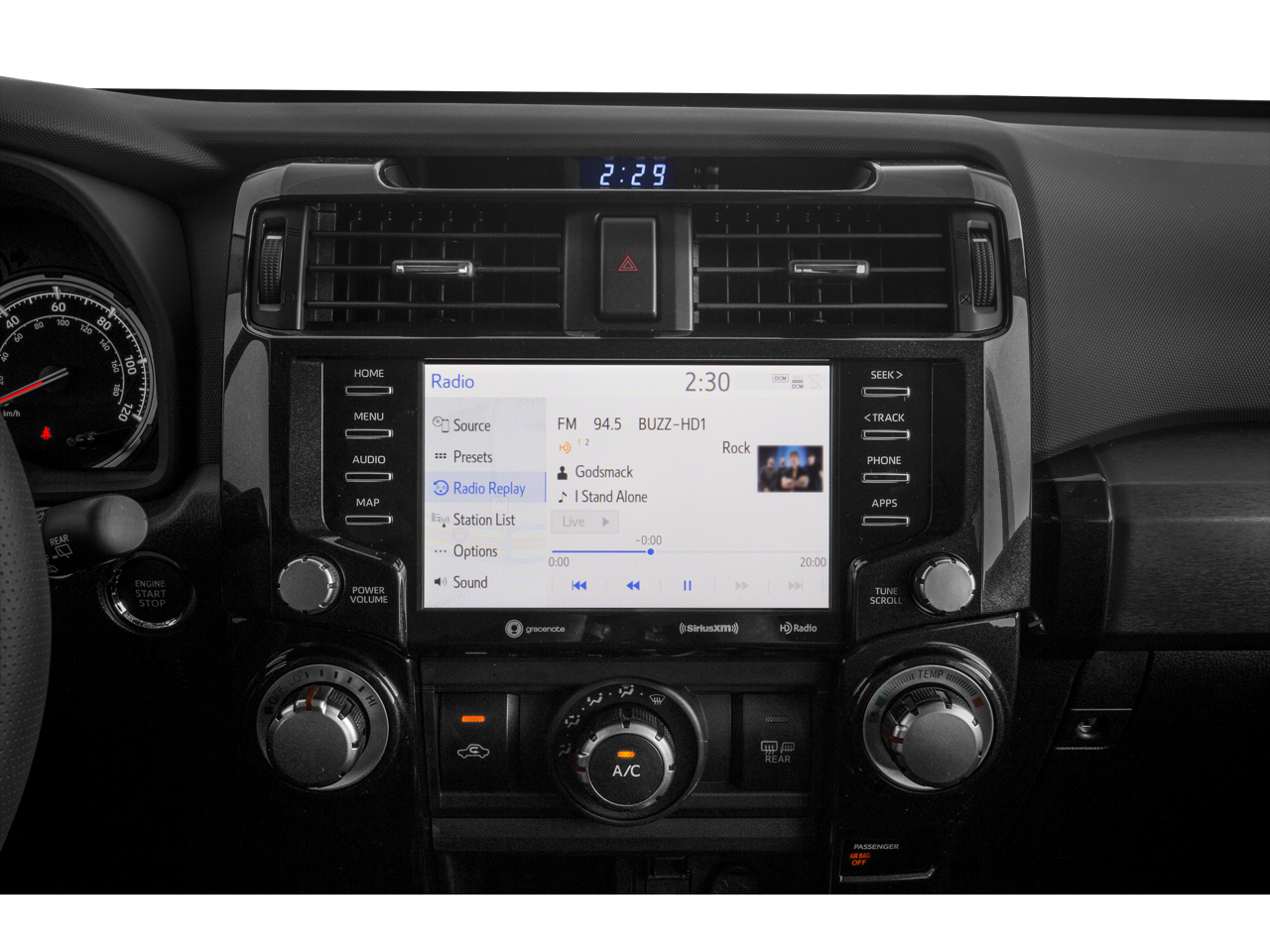 3.727 Axle Ratio, 4-Wheel Disc Brakes, 8 Speakers, ABS brakes, Air Conditioning, Alloy wheels, AM/FM radio: SiriusXM, Anti-whiplash front head restraints, Apple CarPlay/Android Auto, Auto High-beam Headlights, Auto-dimming Rear-View mirror, Black Chrome TRD Performance Exhaust, Black Roof Rails, Body Color Heated Mirrors, Brake assist, Bumpers: body-color, Compass, Driver door bin, Driver vanity mirror, Dual front impact airbags, Dual front side impact airbags, Electronic Stability Control, Emergency communication system: Safety Connect with 1-year trial, Exterior Parking Camera Rear, Front anti-roll bar, Front Bucket Seats, Front Center Armrest, Front fog lights, Front reading lights, Front wheel independent suspension, Garage Door Opener, Garage door transmitter: HomeLink, Heated door mirrors, Heated front seats, Illuminated entry, Knee airbag, Leather Shift Knob, Leather steering wheel, Low tire pressure warning, Moonroof Package, Moonroof w/Tilt Up & Slide, Navigation System, Occupant sensing airbag, Outside temperature display, Overhead airbag, Overhead console, Overland Option, Panic alarm, Passenger door bin, Passenger vanity mirror, Power door mirrors, Power driver seat, Power passenger seat, Power steering, Power windows, Predator Tube Step, Radio: Premium Audio w/Dynamic Navigation, Rear anti-roll bar, Rear seat center armrest, Rear window defroster, Rear window wiper, Remote keyless entry, Roof rack, Security system, Softex Synthetic Leather Seat Trim, Speed control, Speed-sensing steering, Split folding rear seat, Spoiler, Steering wheel mounted audio controls, Tachometer, Telescoping steering wheel, Tilt steering wheel, Traction control, Trip computer, Turn signal indicator mirrors, Upgrade Speedometer, Variably intermittent wipers, Venture All Weather Floor Liners, Venture Cargo Tray, Venture Crossbars, Venture Package, Wheels: 17 Dark Gray Metallic Alloy, Yakima Roof Cargo Basket.