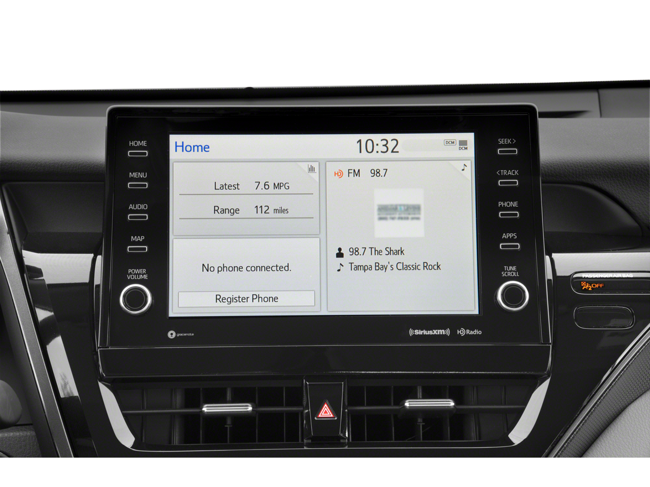 4-Wheel Disc Brakes, 6 Speakers, ABS brakes, Air Conditioning, Alloy wheels, AM/FM radio: SiriusXM, Apple CarPlay/Android Auto, Auto High-beam Headlights, Auto-dimming Rear-View mirror, Automatic temperature control, Brake assist, Bumpers: body-color, Delay-off headlights, Driver door bin, Driver vanity mirror, Dual front impact airbags, Dual front side impact airbags, Electronic Stability Control, Emergency communication system: Safety Connect (1-year trial), Exterior Parking Camera Rear, Four wheel independent suspension, Front anti-roll bar, Front Bucket Seats, Front Center Armrest, Front dual zone A/C, Front reading lights, Fully automatic headlights, Garage door transmitter: HomeLink, Heated door mirrors, Heated front seats, Illuminated entry, Knee airbag, Leather steering wheel, Low tire pressure warning, Multi-Stage Heated Front Bucket Seats, Occupant sensing airbag, Outside temperature display, Overhead airbag, Overhead console, Panic alarm, Passenger door bin, Passenger vanity mirror, Perforated Leather Seat Trim, Power door mirrors, Power driver seat, Power passenger seat, Power steering, Power windows, Radio data system, Radio: Audio Plus, Rear anti-roll bar, Rear reading lights, Rear seat center armrest, Rear side impact airbag, Rear window defroster, Remote keyless entry, Security system, Speed control, Speed-sensing steering, Split folding rear seat, Spoiler, Steering wheel mounted audio controls, Tachometer, Telescoping steering wheel, Tilt steering wheel, Traction control, Trip computer, Turn signal indicator mirrors, Variably intermittent wipers, Wheels: 19 x 8J Alloy.